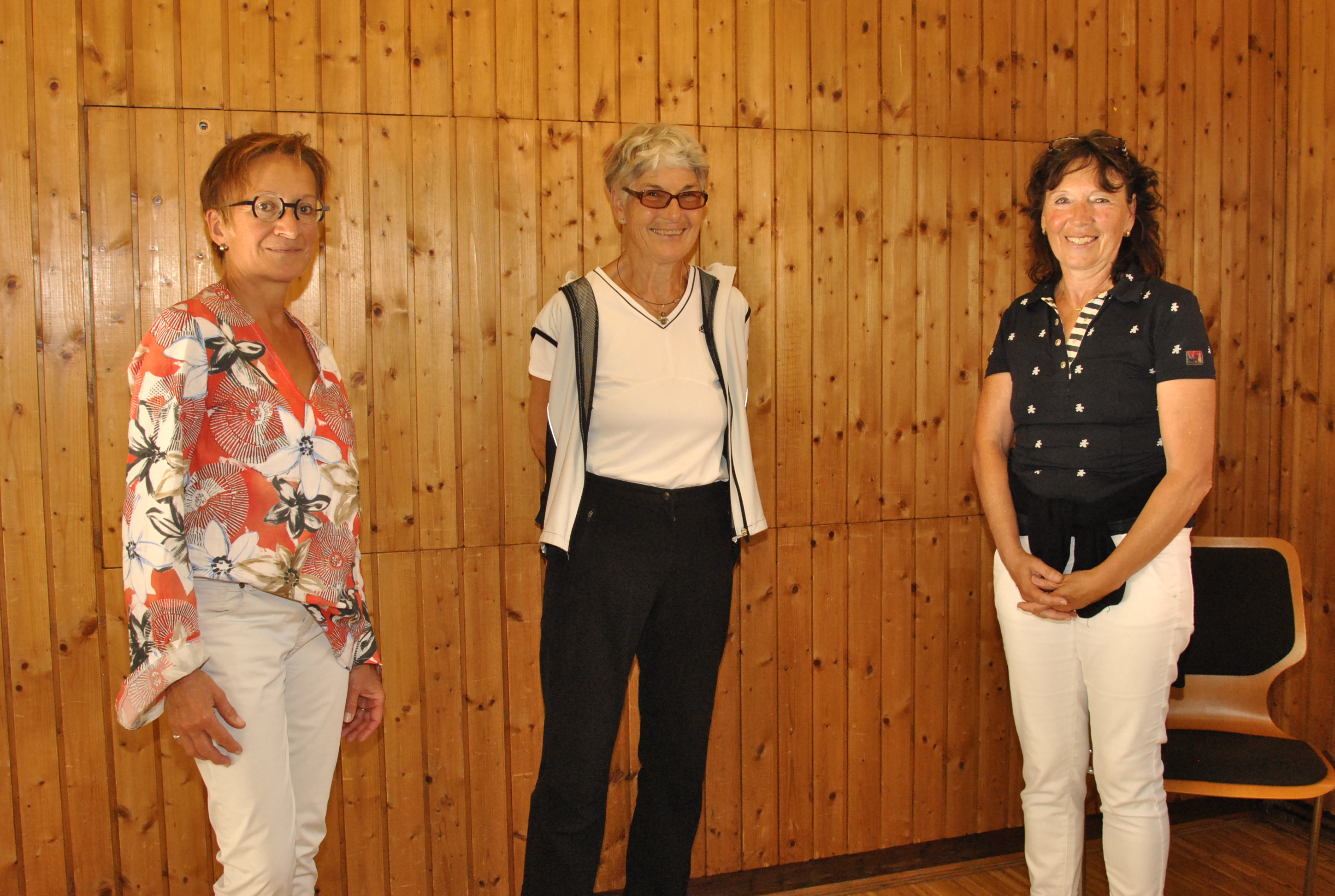 Im Bild von links: Kursleiterinnen Heide Kaiser und Doris Schlenker (Turnerbund), Dr. Petra Mommert-Jauch
