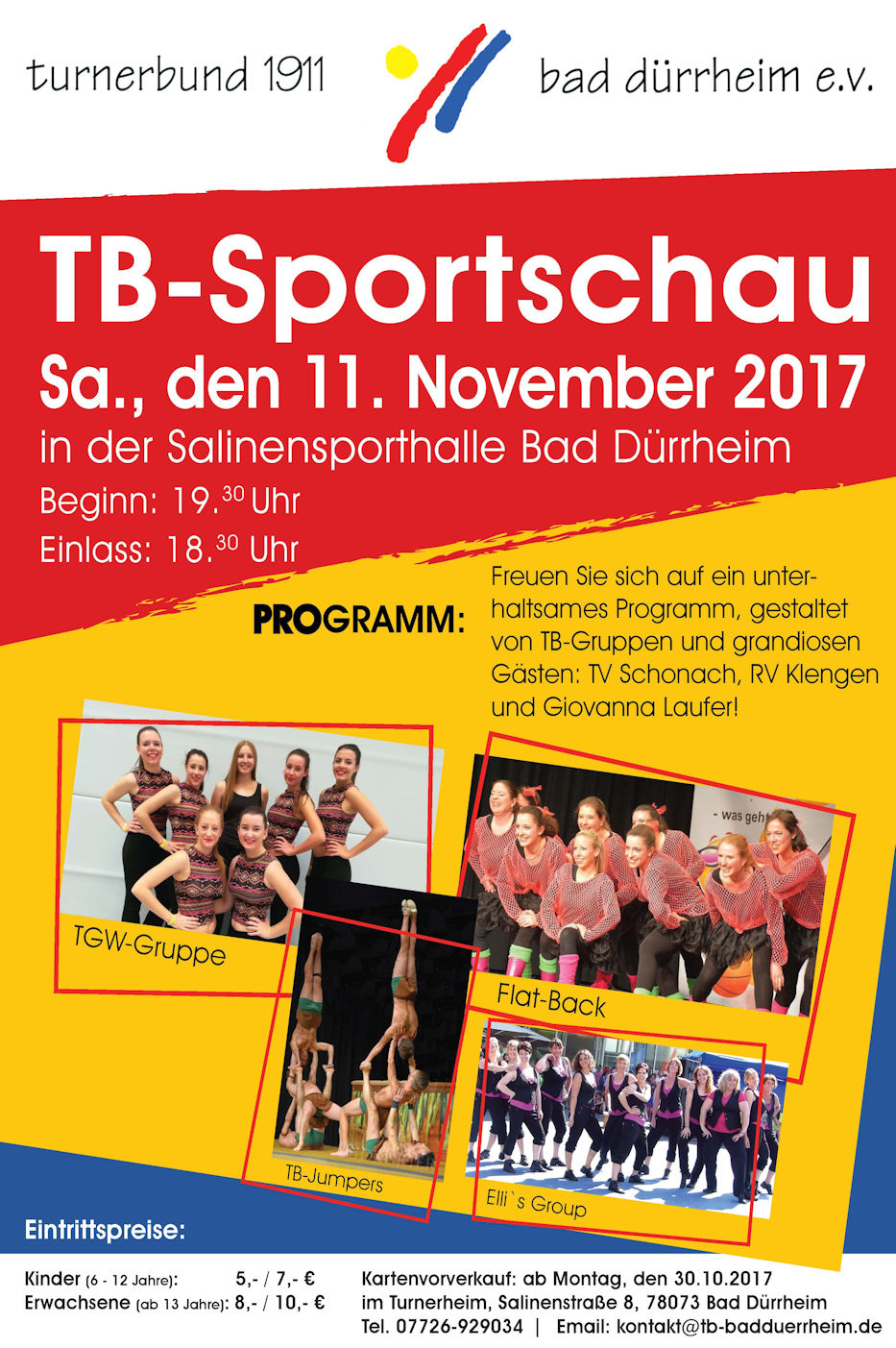 Am Samstag, den 11. November gestalten unsere TB-Gruppen ein kunterbuntes Programm für die ganze Familie in der Salinensporthalle.